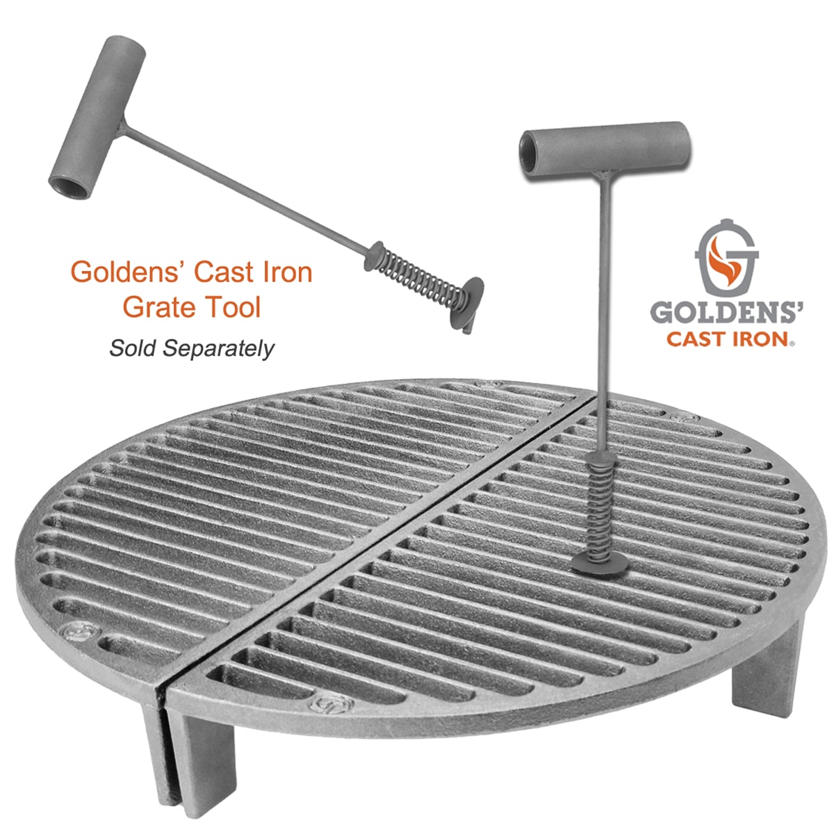 Our reversible cast iron half grate, for the 20.5″ Goldens’ Cast Iron Cooker, gives you the ability to choose both the distance to the fire as well as the width of the cooking surface, with 330.6 square inches of cooker area. In the lower position, the grate provides a wide cooking surface for beautiful kamado grill marks with each sear. The upper position is ideal for smoking and grilling. The purchase of two additional grates adds a tiered-cooking option to your cast iron kamado cooker – perfect for smoking multiple racks of ribs at a time! Rack and stack!
